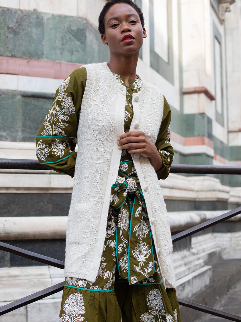 Florence speaks in quiet details…neoclassical friezes that adorn doorways, sculpted stonework that frames garden paths, and patterns that repeat like poetry across its facades. These classical elements echo throughout our fall collection, stitched into silhouettes with a timeless, handmade feel.