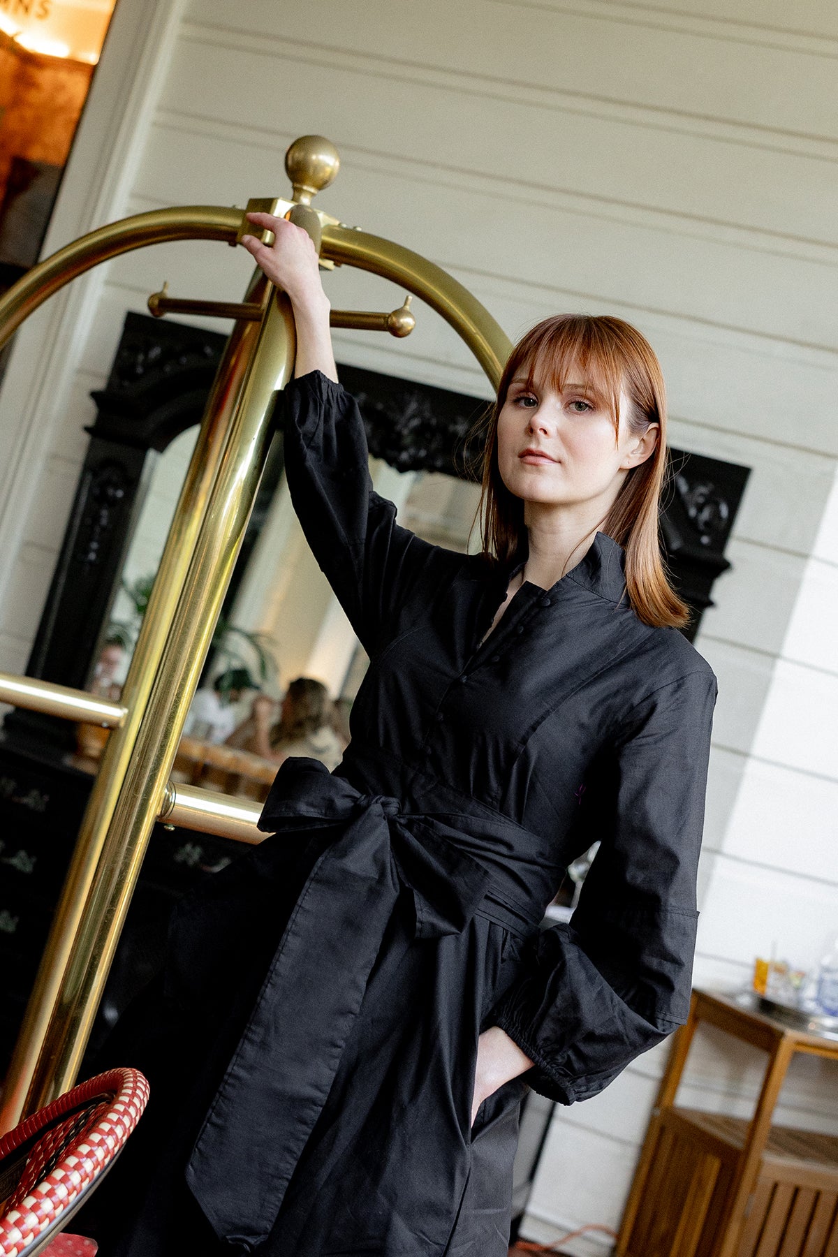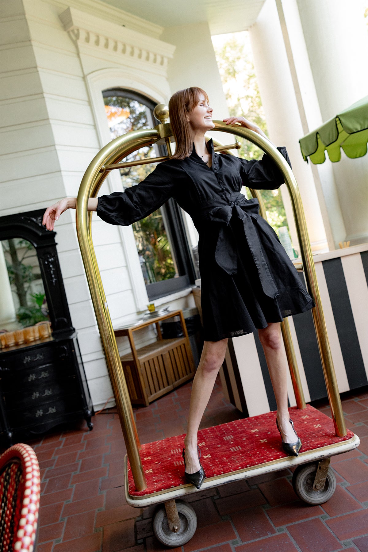 SUE SARTOR Flounce Shorty | Black Cotton Travel
