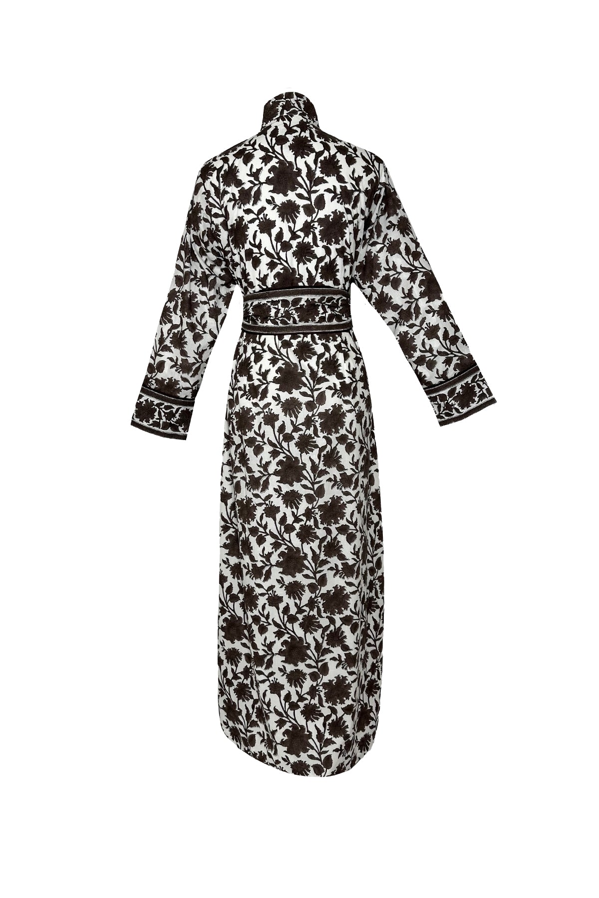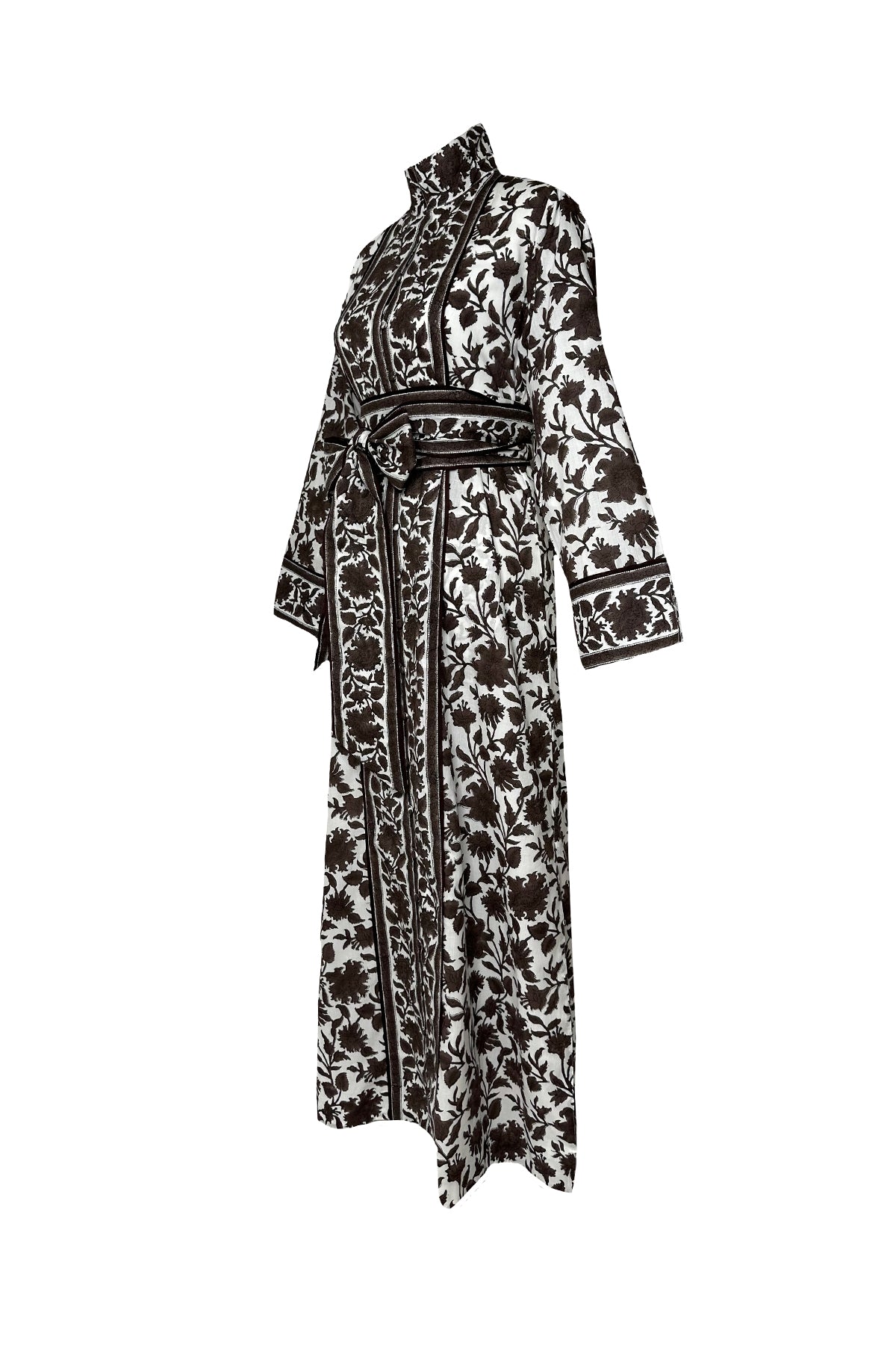 Our hand block printed espresso colorway in the best selling floral Vintage Lily © 2024 Print Series styles capture the essence of fall - rich, timeless, and effortlessly elegant. There’s something eternally classic about the contrast of crisp white against deep, velvety browns. This rich espresso brown in the Marrakech Kaftan is sure to be a show-stopper this autumn with its flattering lines, free-flowing side slits, fully functional button-front, and optional sash.