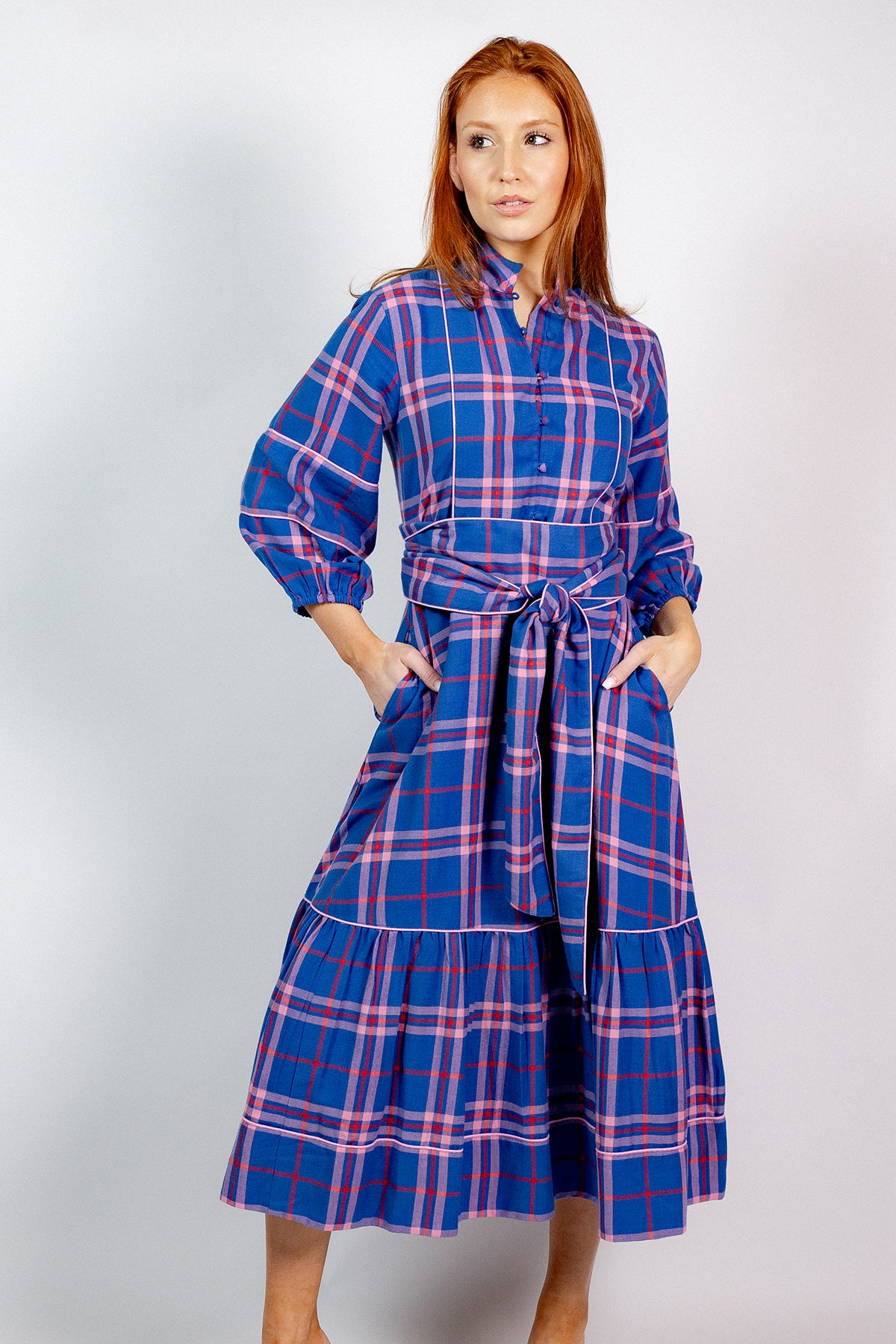 SUE SARTOR Flounce | Cobalt/Roseberry Islay Tartan