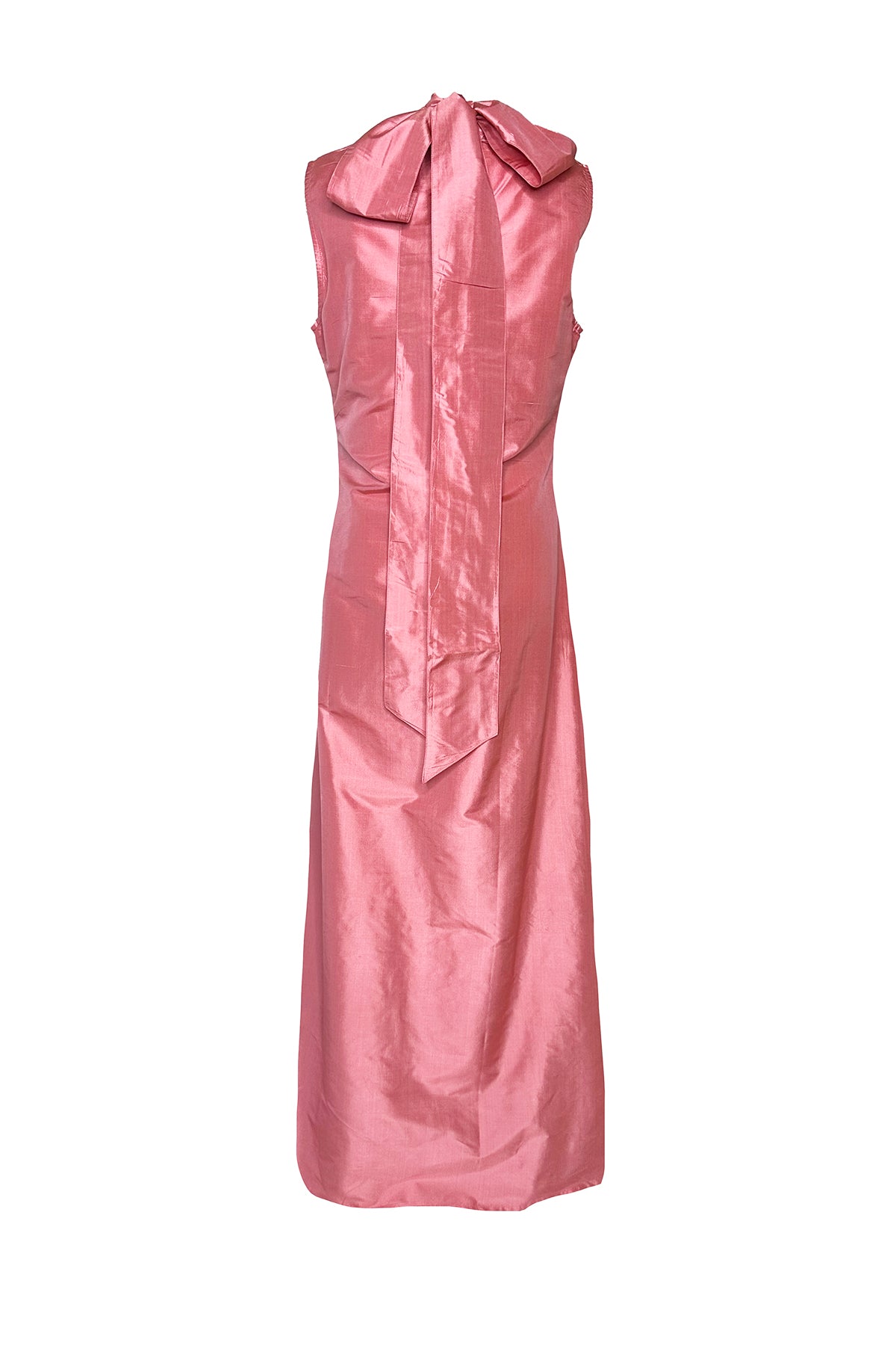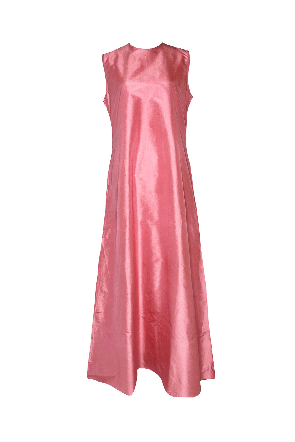 Now offered in a 100% hand-loomed silk taffeta coral pink hue, our classic Tibi dress is a go-to versatile favorite for special occasion dressing. Featuring versatile attached ties, this piece can be styled effortlessly: wrap them in front for a defined shape, tie them at the back for a soft drape, or let them cascade freely for an airy, romantic finish. Event-ready and exquisitely elevated - the Tibi dress is your statement piece for the season.