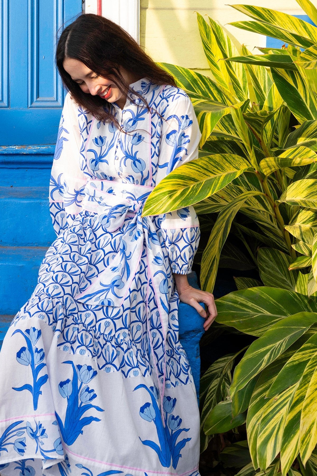 Classic blues with a whisper of blush pink piping — all set on crisp comfortable white 100% cotton. Our Spring Tulips are in full bloom, just in time for Spring celebrations and every sunlit spring gathering. Tulips carry such a beautiful meaning as symbols of new beginnings and renewal.