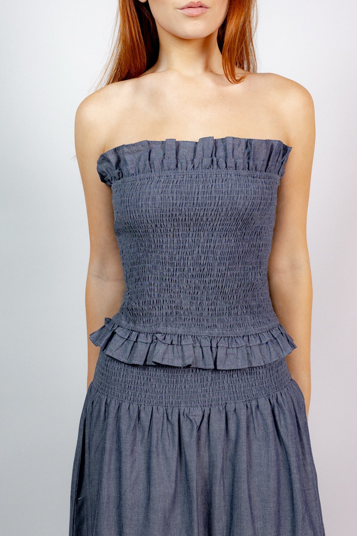 Our lightweight Indigo Chambray is part of an essential, wear-everywhere collection we’ve been perfecting behind the scenes. It’s beautifully broken-in, washes like a dream, and travels impeccably — easy, polished, and ready for whatever’s on your calendar. Pair it back with the matching Strapless Bandeau Top for the perfect set, ready to throw on and go!
