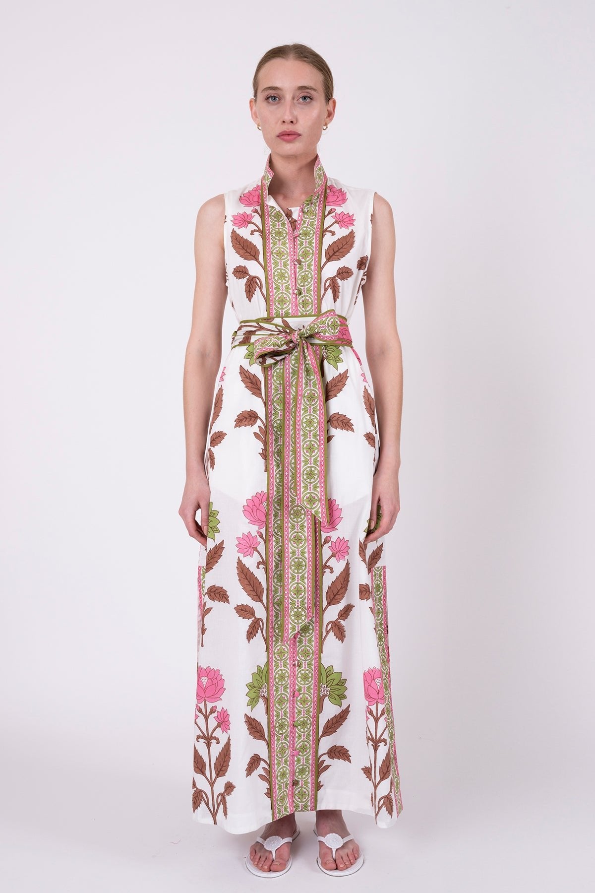 Sleeveless Marrakech Kaftan | Pink/Peridot Dahlia