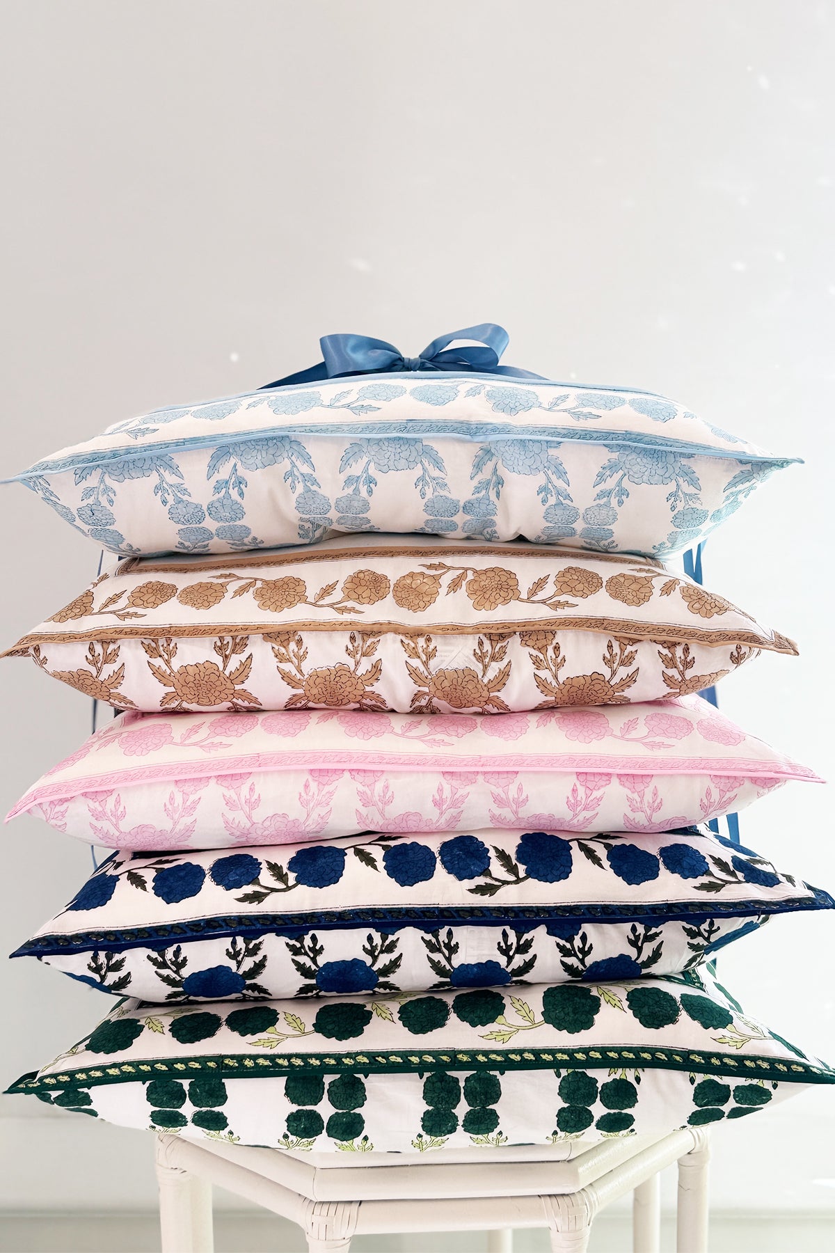 Our custom Euro Sham pillows in the signature SUE SARTOR Marigold © 2024 Print bring instant joy and pattern to your space. Available in five of our best-selling colorways, these pillows are designed to mix, match, and layer beautifully. Each features oversized tie closures that can be styled front or back, so you can choose whether to showcase the charming detail or keep the look clean and classic.Perfect for adding a cheerful touch to a bedroom, cozying up a den, or stacking on the floor for extra lounging (we love them for dorms too!).Sold in bundles of 1, 2, or 3 depending on your decorating needs.