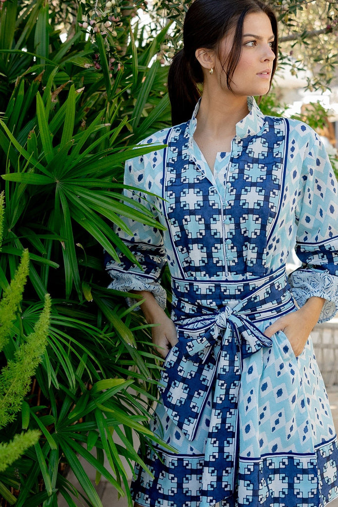 Ikat for the win! We love the Ikat © 2024 Block Print series this Resort season because it is so playful yet utterly sophisticated. This print set is inspired by our love for textural, old-world treasures of Morocco. We have combined several hand-drawn prints to create this wonderfully unique pattern play. We particularly love this soft dusty blue paired back to the rich navy blue, making this an effortless hero in you closet for vacays and into springtime!