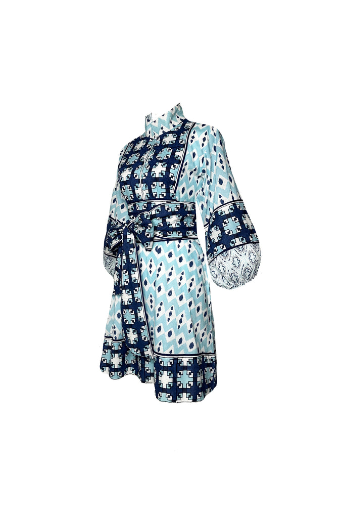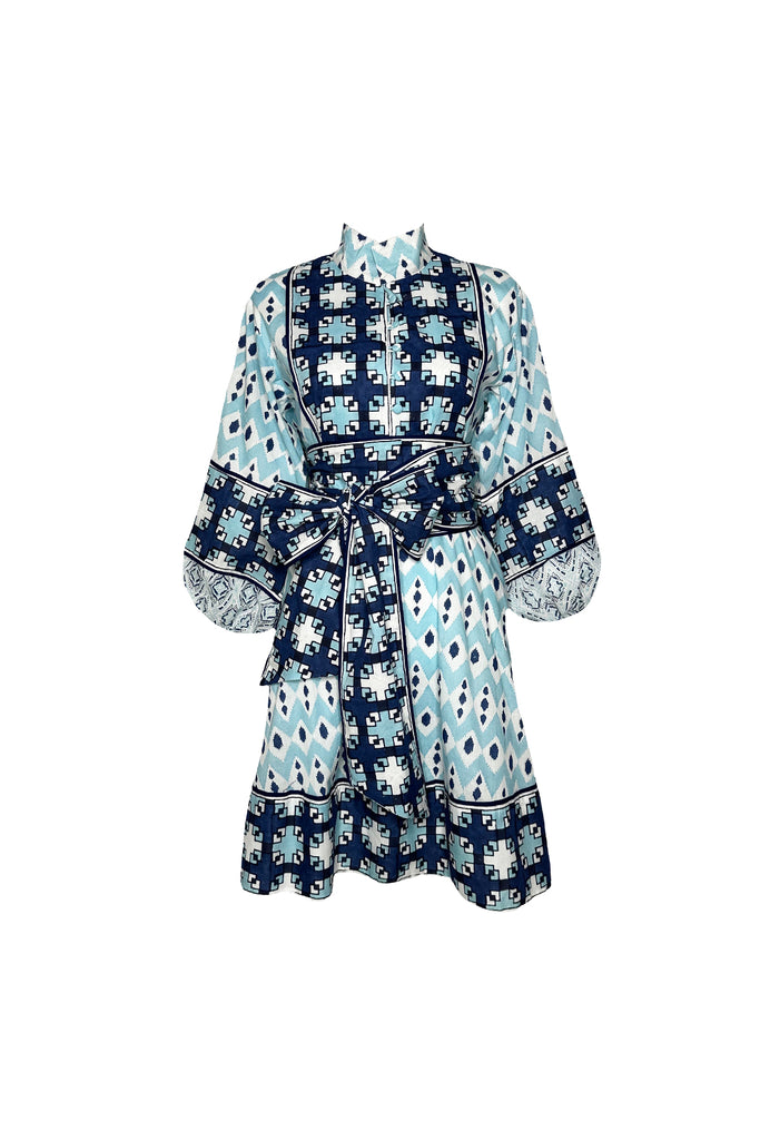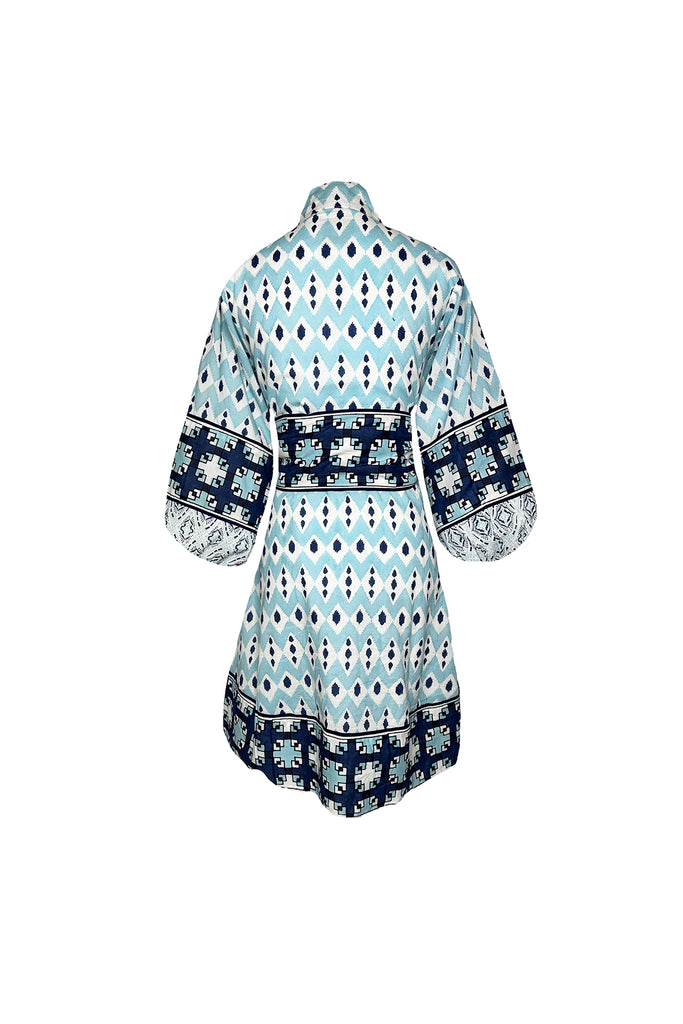 SUE SARTOR Flounce Shorty | Dusty Blue/Navy Ikat