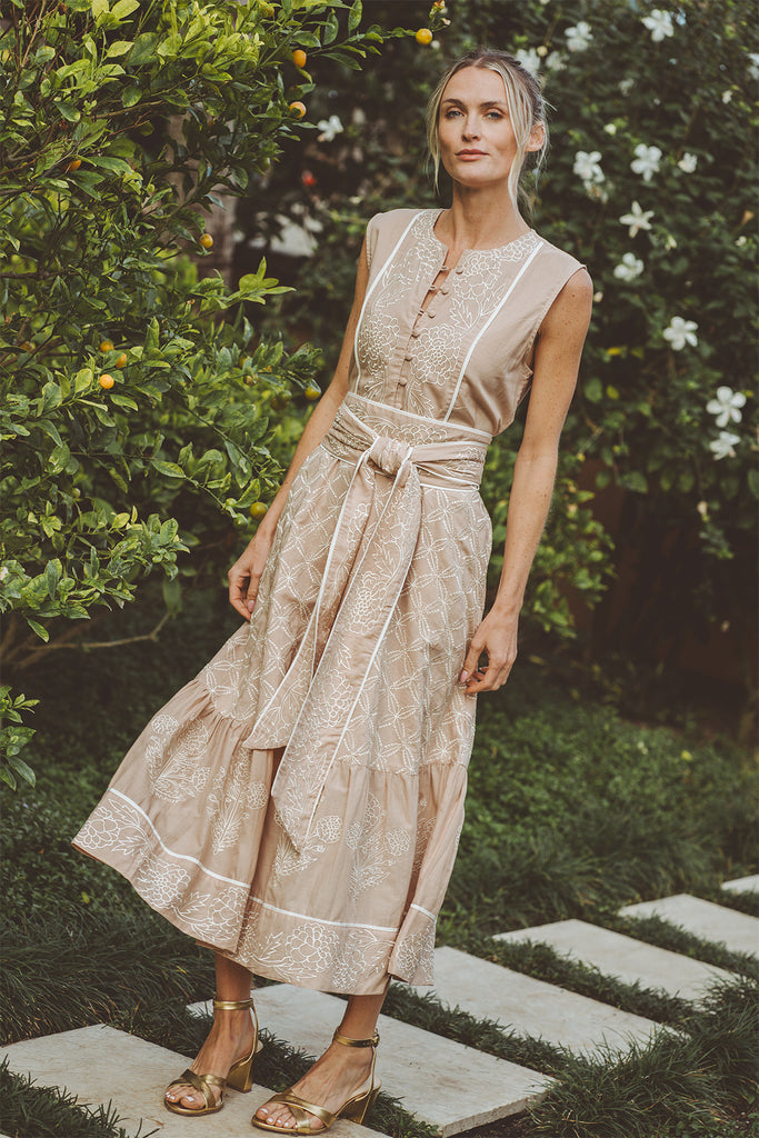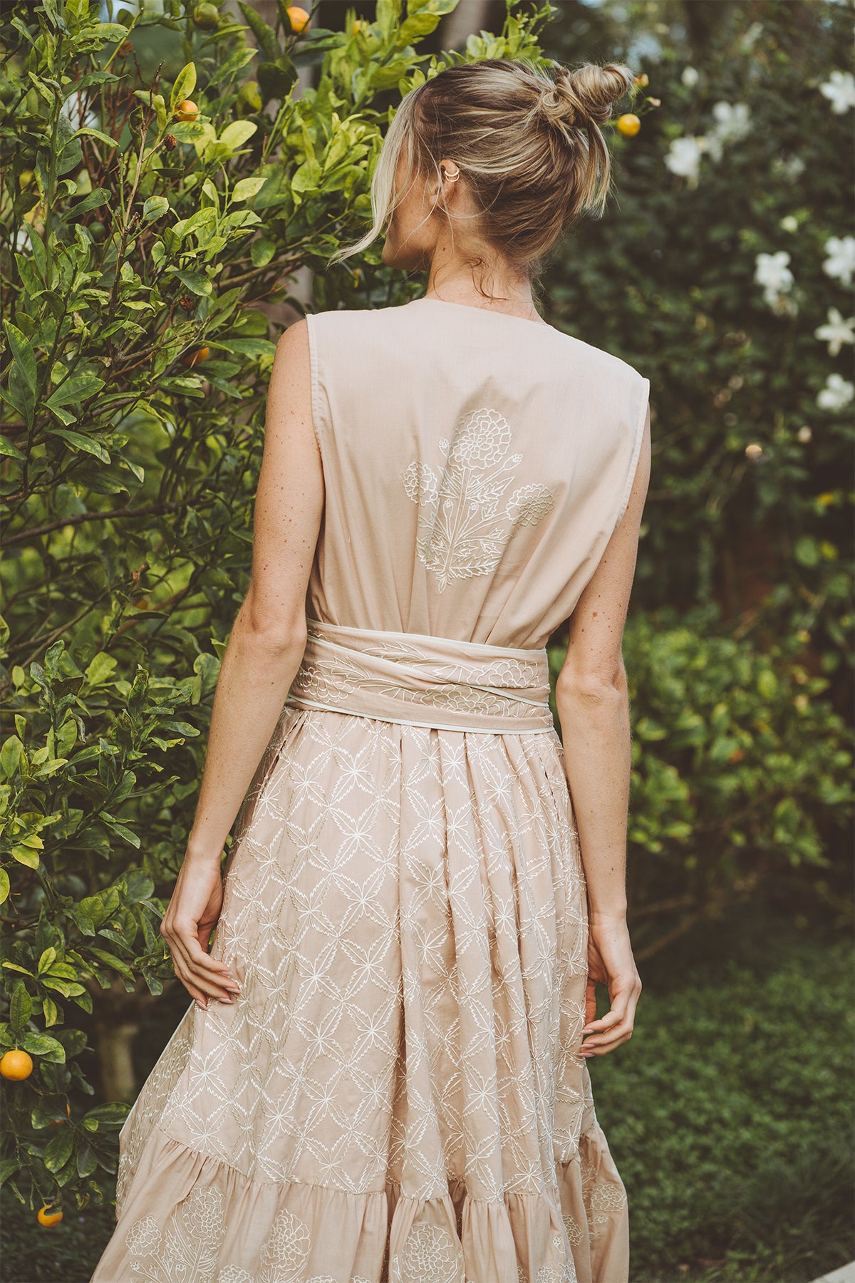 Nos broderies de fleurs de pivoine sont la combinaison parfaite de fleurs à grande échelle et de magnifiques boutons fleuris. Chaque modèle est créé avec une attention particulière portée à chaque détail, garantissant que chaque robe est unique en son genre. Nos robes sont fabriquées à la main sur un tissu 100 % coton léger de qualité supérieure, tandis que la broderie elle-même est méticuleusement cousue à l'aide de fil de soie 100 % durable. Cette combinaison des meilleurs matériaux et du savoir-faire artisanal donne naissance à une collection d'une beauté inégalée.