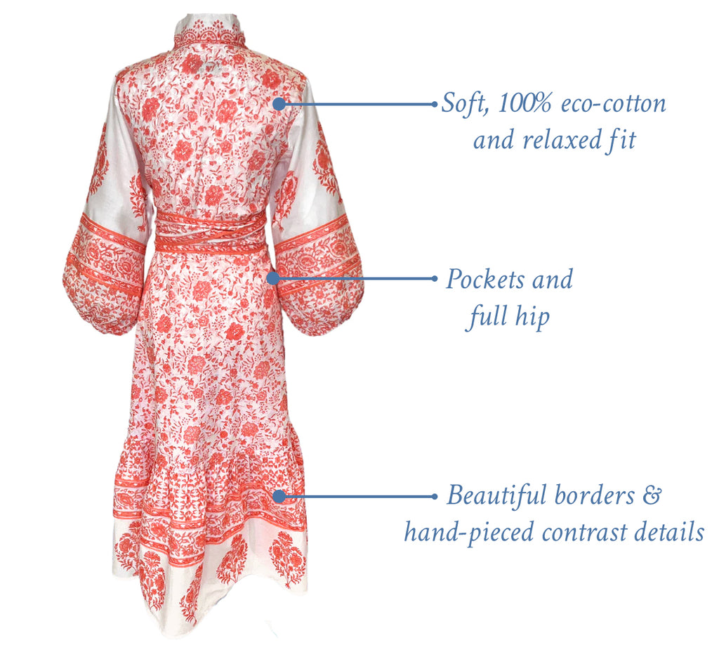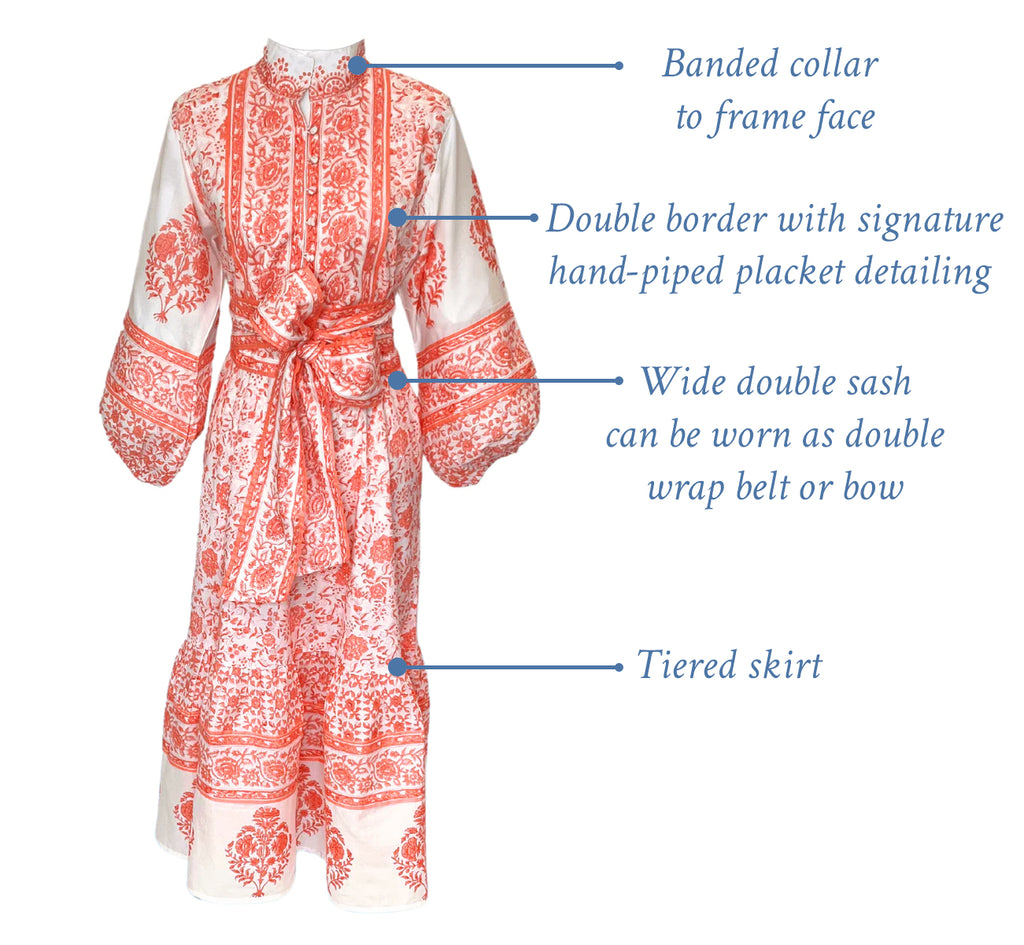 The Sue Sartor Flounce Dress™ is our best selling style for a reason. Based on a comfy kaftan concept, it allows ease of movement and absolute comfort- but still a put together, sophisticated look. You'll reach for this reliable + versatile closet favorite again and again. Dress the flounce way up or pare it back with tennis shoes for a casual chic look!