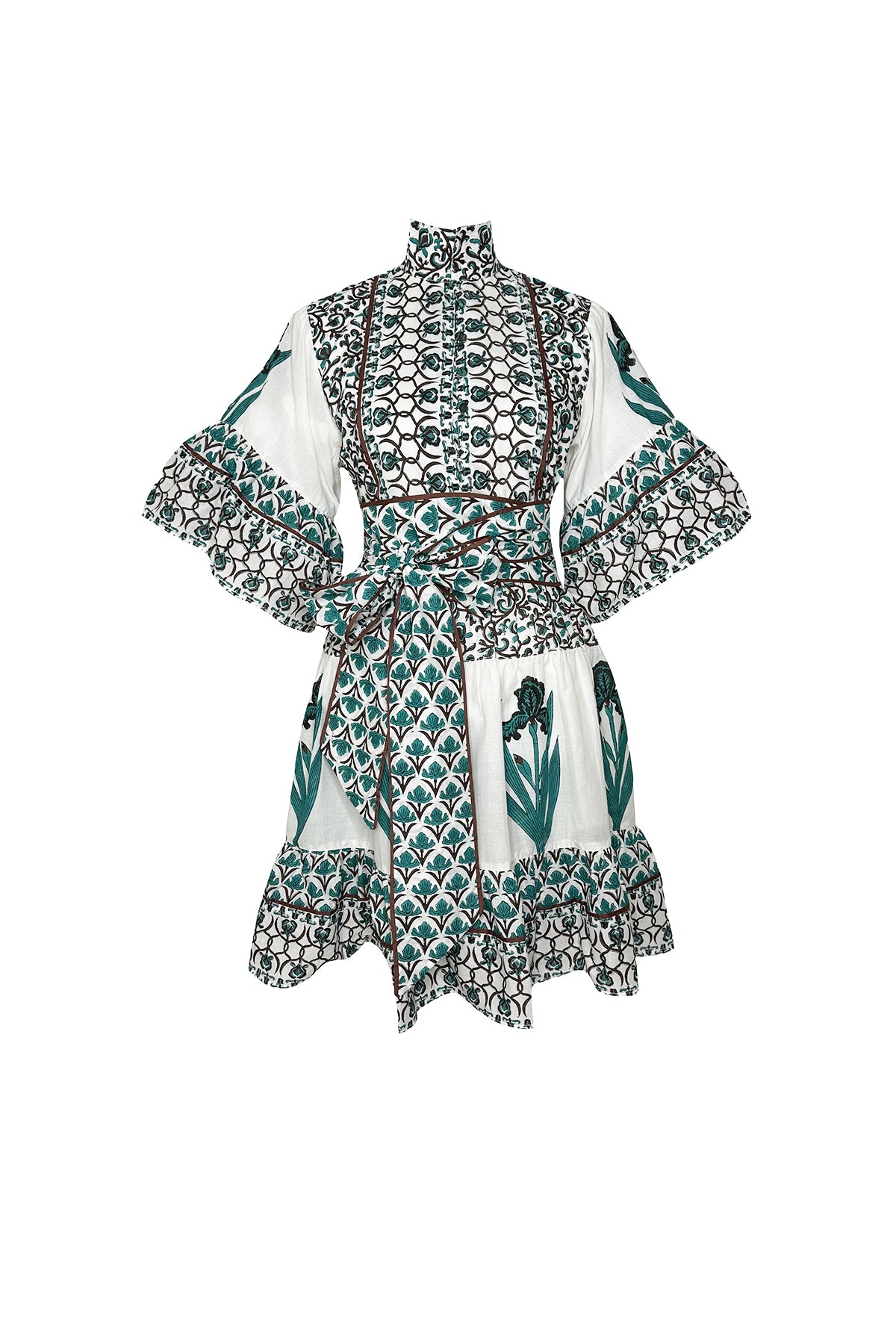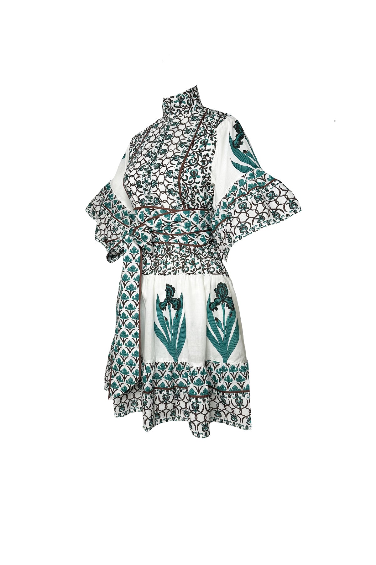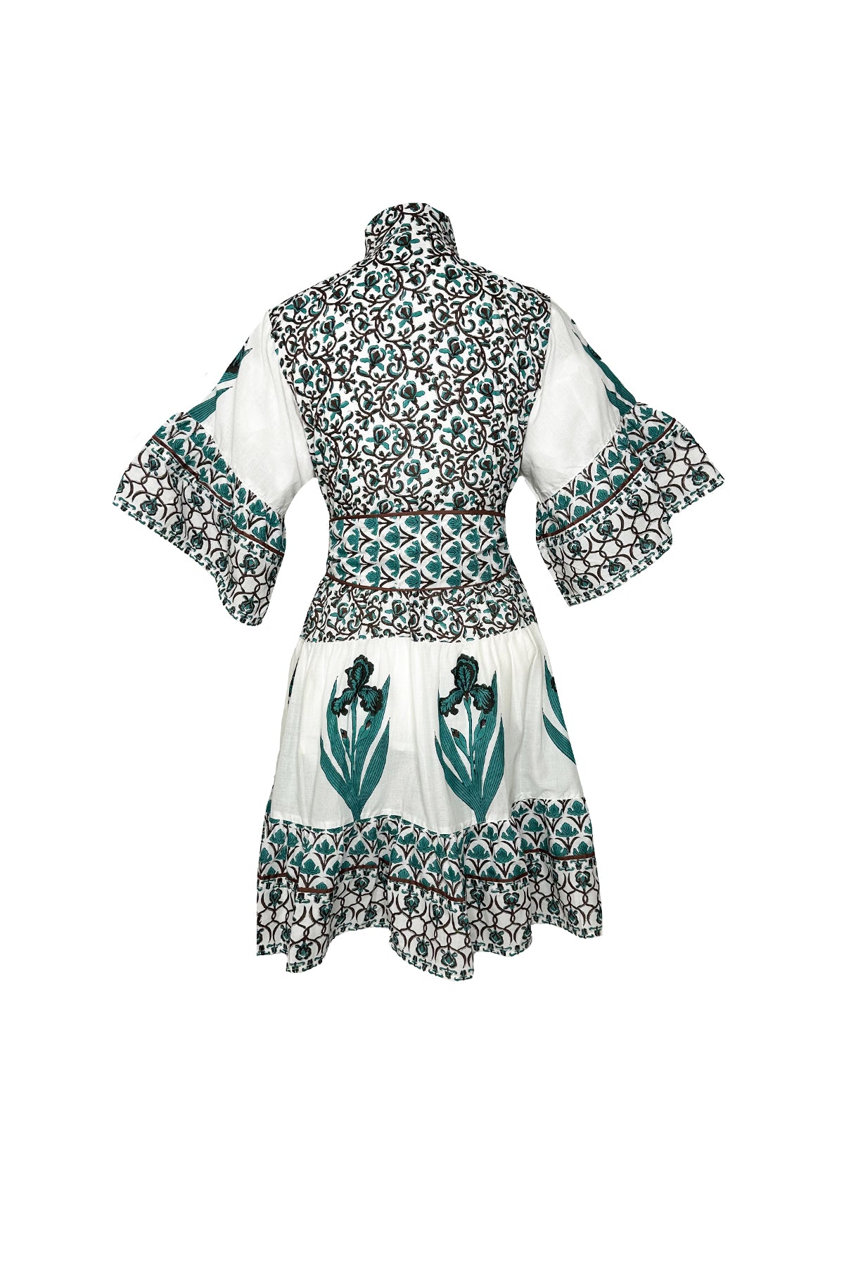 A whimsical mix of hand block printed details on our Hamilton Short Kaftan couples artisan beauty with an airy short silhouette. Our verdigris and espresso Iris © 2025 Print echoes the rich green patinas of Florence and the deep browns of autumn, evoking the timeless nostalgia. In Florence, the iris symbolizes wisdom and hope - its graceful bloom are a lasting emblem of the city’s enduring beauty. Pair it back with a fun boot and a sweater for the autumn months ahead.