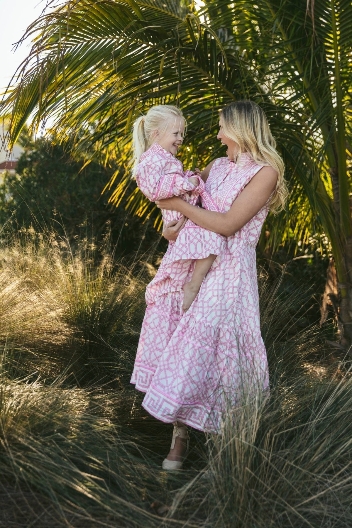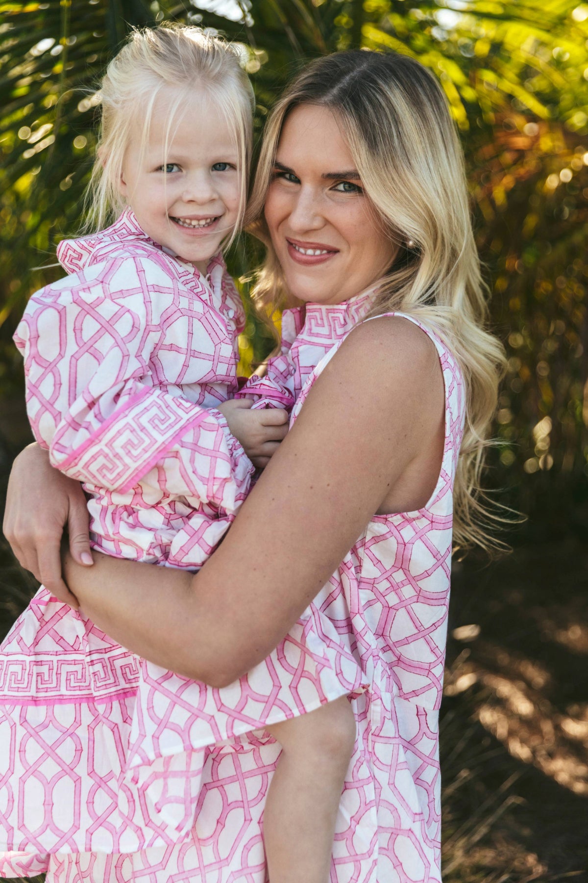 Introducing our Children's Collection! We added our best selling Sue Sartor Flounce™️ style in our hibiscus pink Bamboo Print for children. From matching moments to complimentary colors, now there is a SUE SARTOR style for everyone in the family.