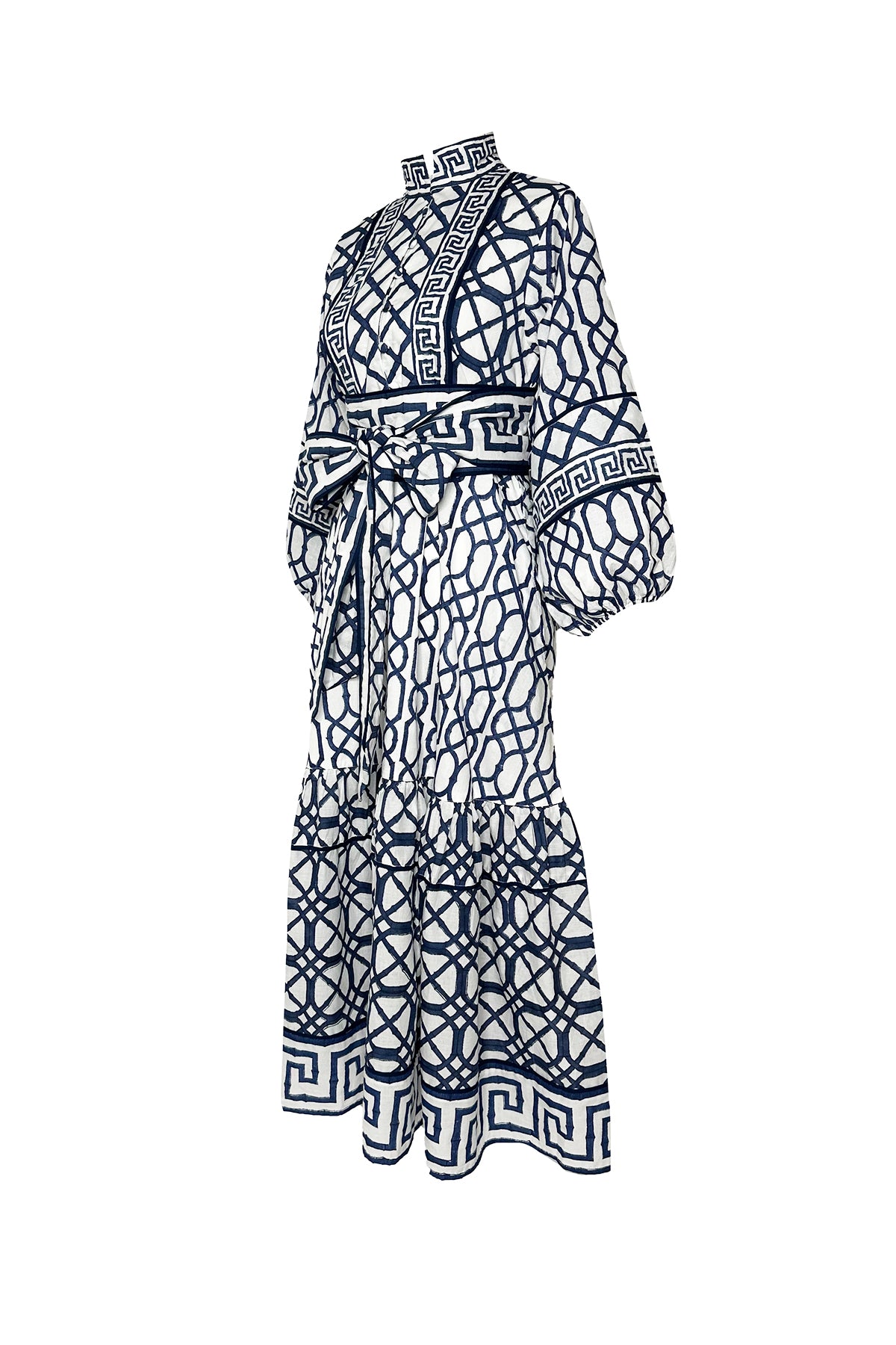 Back by Popular Demand: Our signature Flounce™ Dress returns in a best-selling print from our Navy Bamboo © 2023 Collection - inspired by Palm Beach Regency style and luxurious coastal living. Each exclusive print is hand-drawn, carved into wood blocks, and individually stamped by our artisans before being sewn into our iconic design. The SUE SARTOR Flounce™ Dress is your effortless, travel-ready resort essential — featuring a button placket, banded collar, pockets, custom borders, hand piping and a tiered skirt.